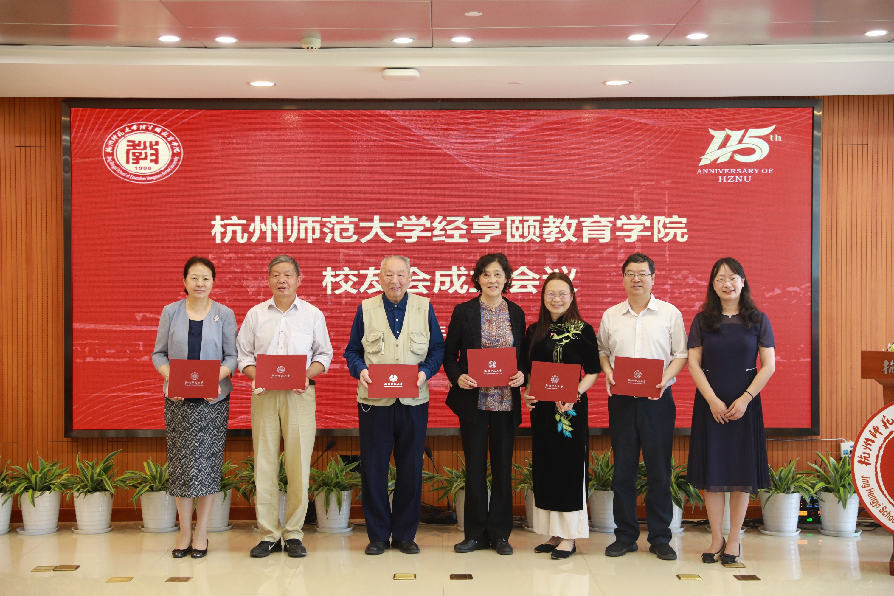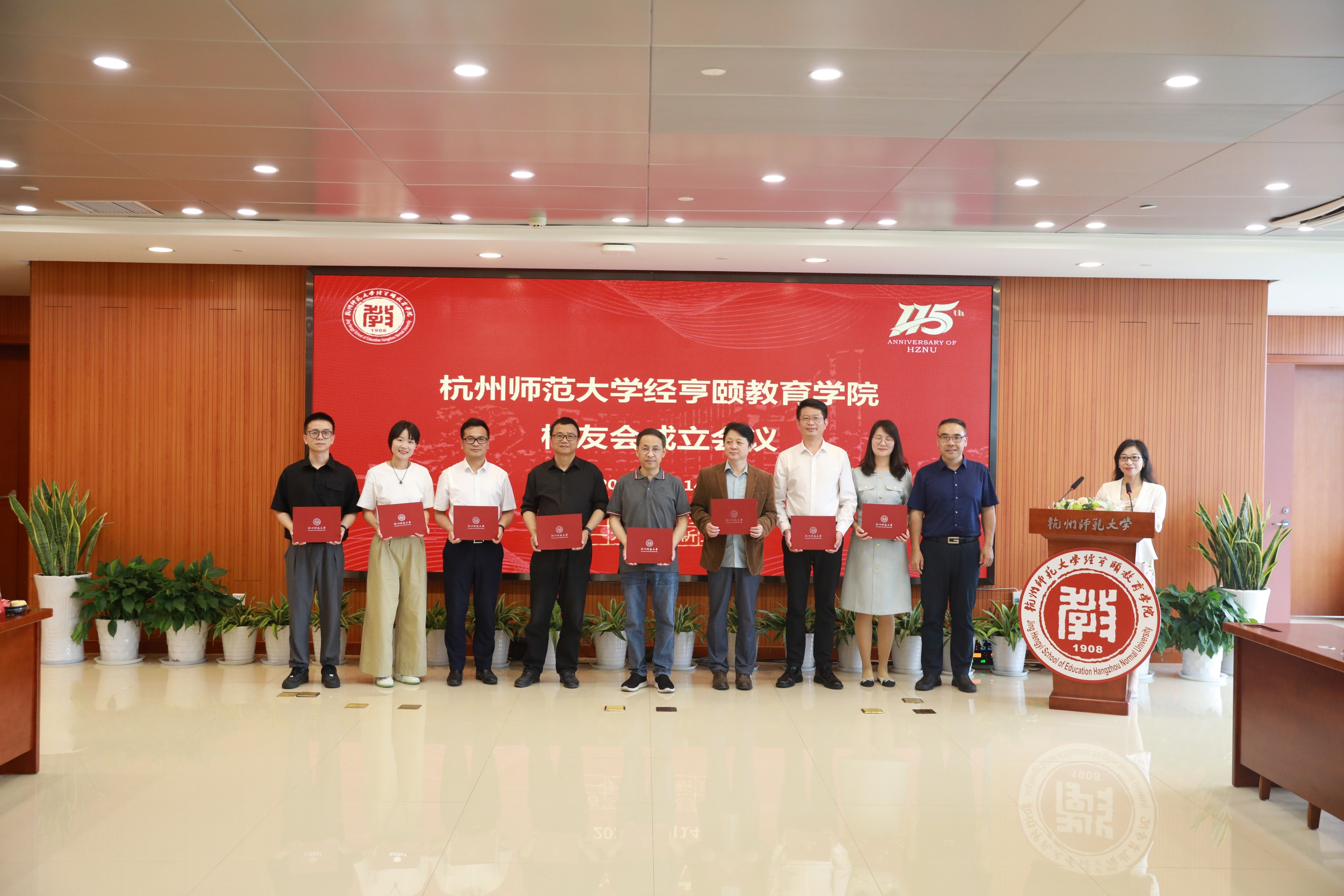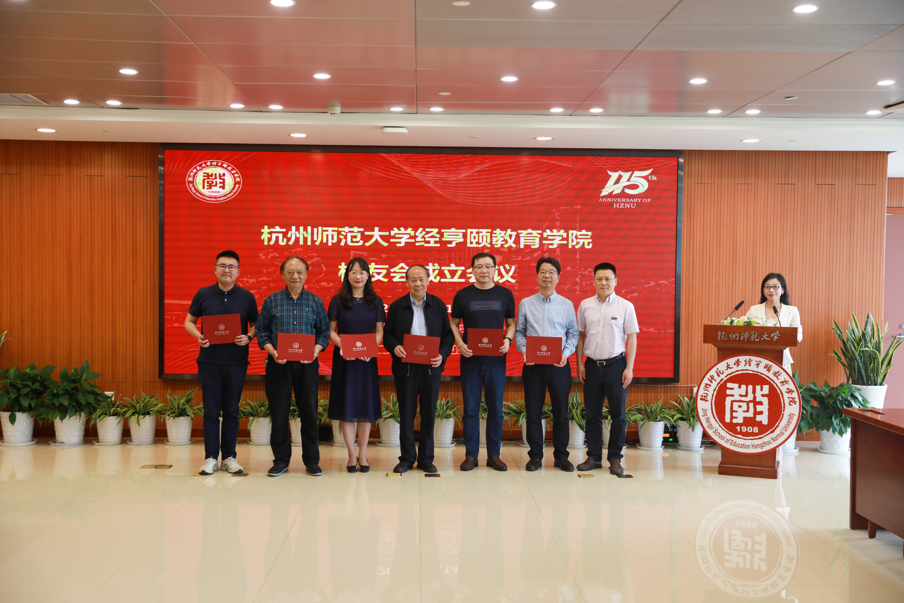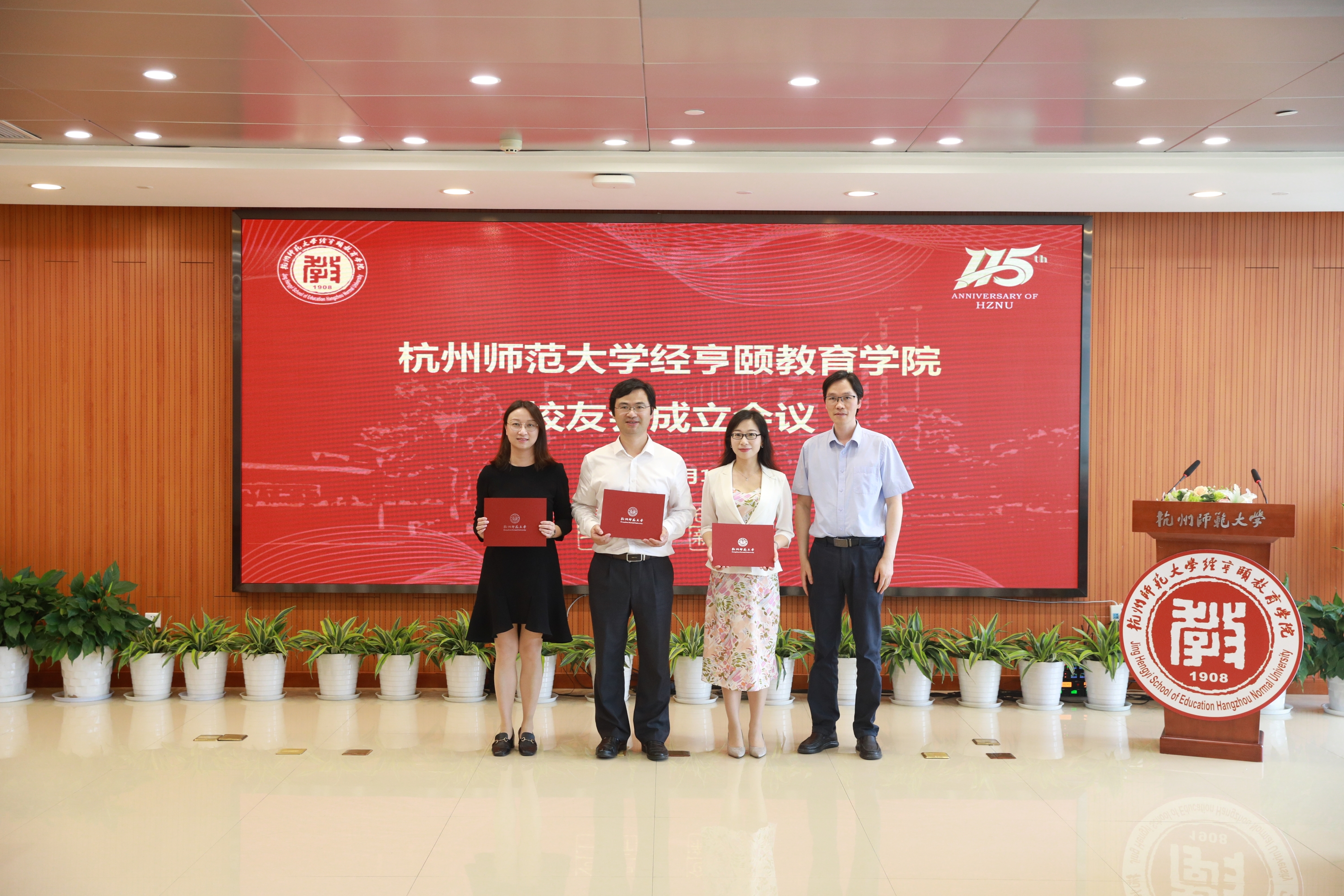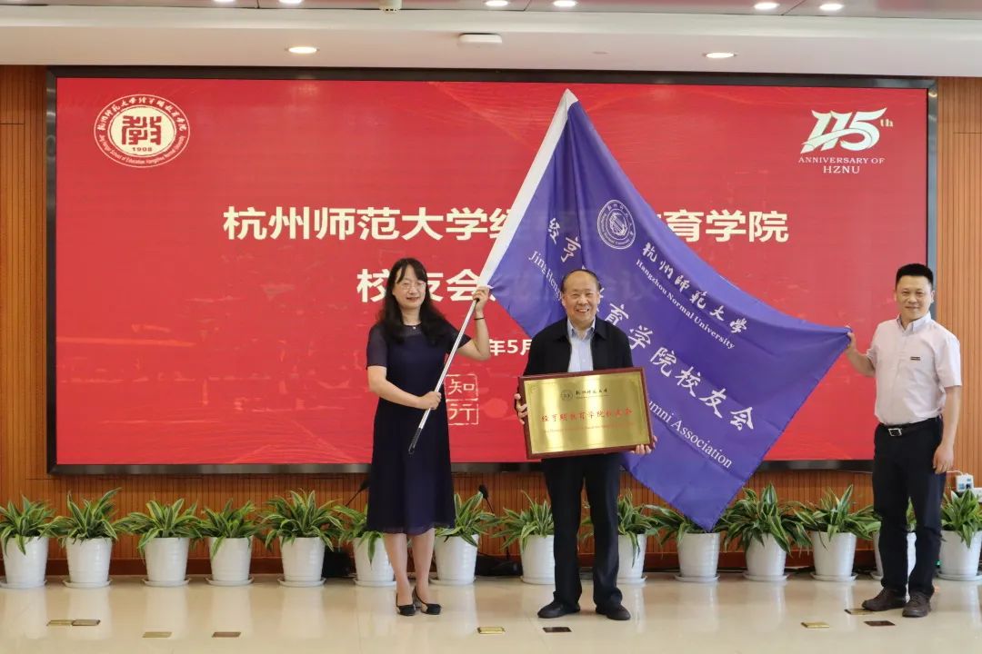 蔡云飞主任向现金网 校友理事会授牌、授旗,杨一青会长和蒋璐敏会长接牌、接旗。随后,蔡云飞主任、严从根院长、蒋璐敏书记、蒋永贵副院长为校友理事会成员颁发聘书。