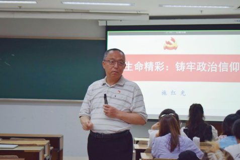 紧接着,施老师重点阐述了政治信仰,包括政治信仰的伟力、滑坡和重塑。他指出马克思主义理论是共产党人的政治信仰,是最宝贵的思想武器。政治信仰是改变旧世界的指路明灯,是精神的支柱,是革命者不断追求进步的内在动力。施老师提出,广大青年要牢记,坚定理想信念是终身课题,需要常修常炼,要信一辈子、守一辈子。不断坚定理想信念、提高政治素养、锤炼道德操守、提升思想境界,成为堪当大任的时代新人。