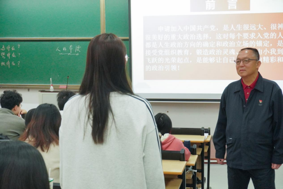 施红光老师以“入党是锻造政治灵魂的光荣起点”为主题,深入剖析了入党对于个人成长与社会发展的深远意义。他指出,锻造政治灵魂是实现从“小我”到“大我” 的关键环节。他以雷锋、白求恩等共产主义战士为例,深刻阐释了无私奉献精神与坚定政治立场在塑造政治信念中的核心价值。从哲学层面来看,人兼具自然、精神与社会属性,而共产党人尤为突出的精神属性,恰是成为完整个体的重要因素。百年来,无数共产党员前仆后继,不畏牺牲,铸就了国家繁荣与人民幸福,彰显了精神属性的强大力量。