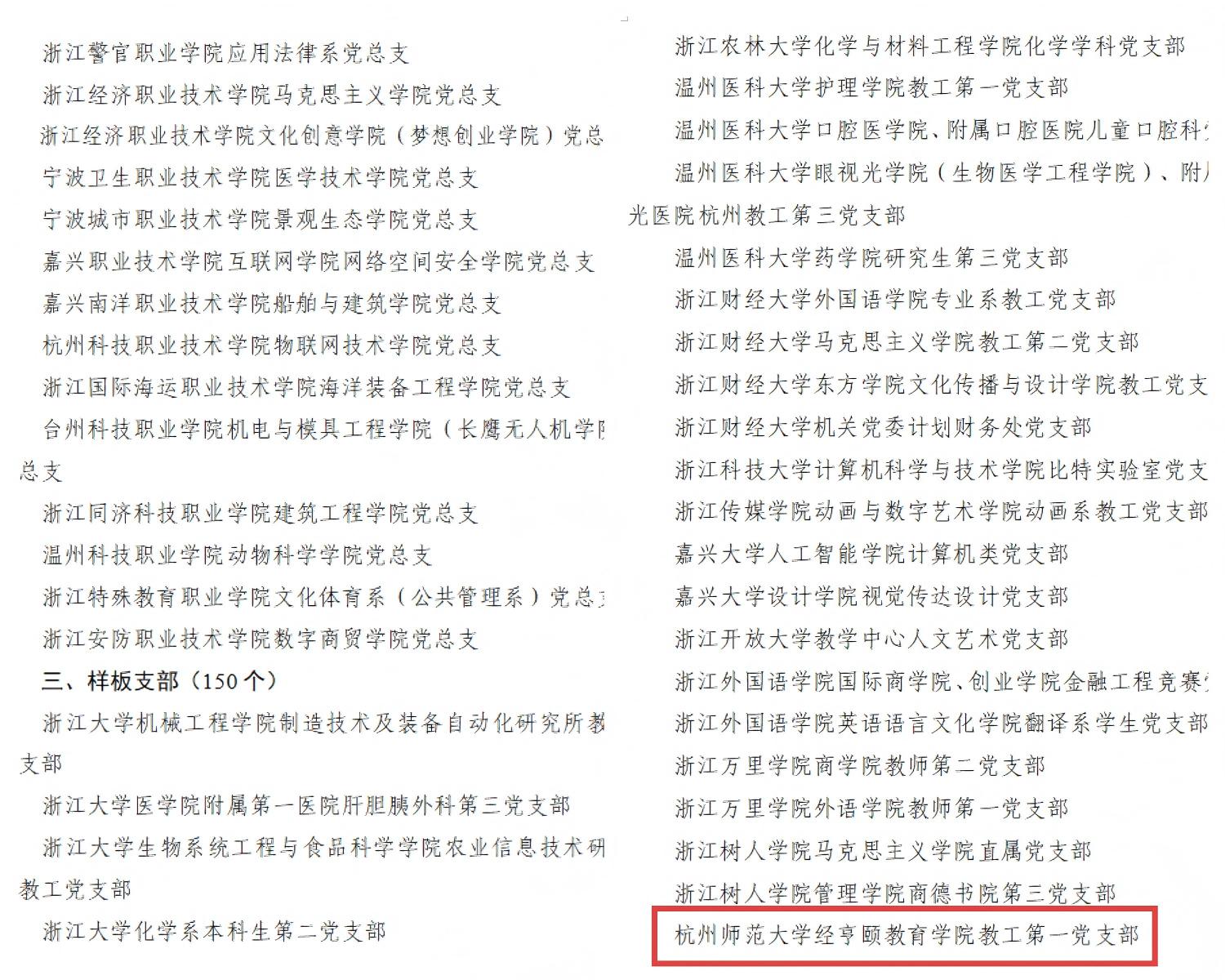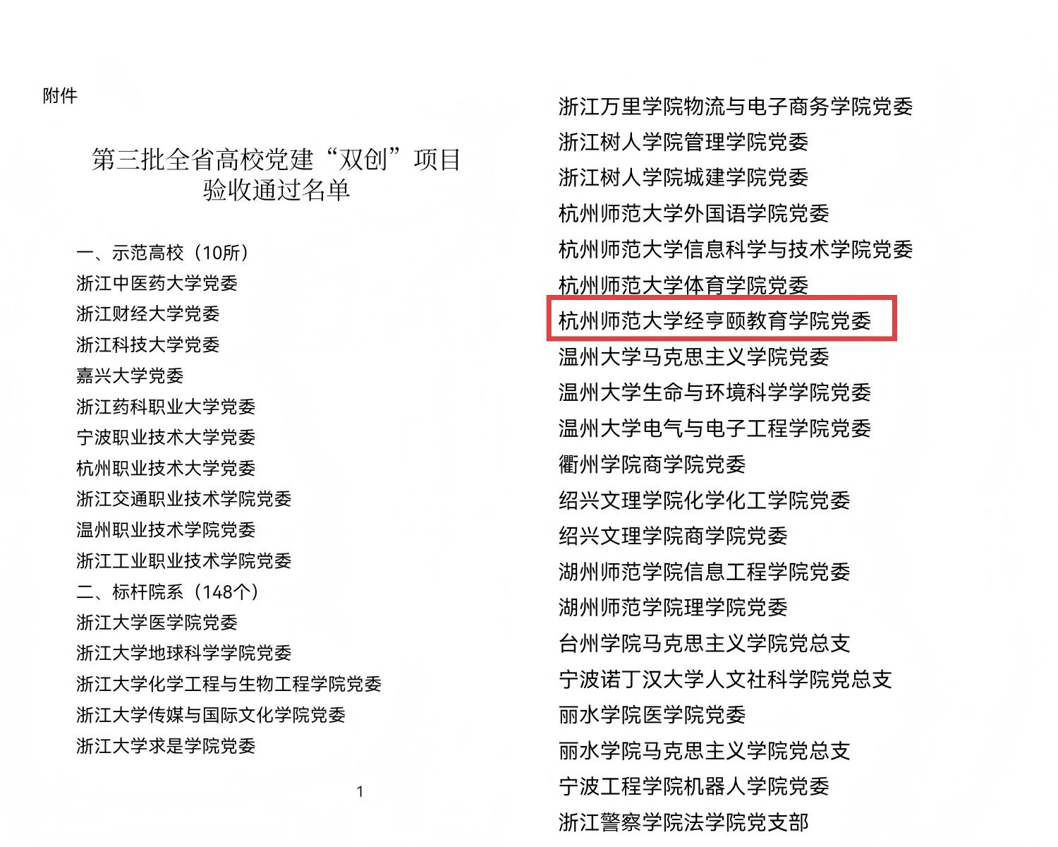 近日,浙江省教育厅公布了第三批全省高校党建“双创”项目验收通过名单,现金网 党委顺利通过全省高校党建工作标杆院系项目验收,教工第一党支部顺利通过全省高校党建工作样板支部项目验收。