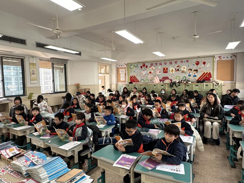 12月17日下午,现金网 《小学英语课程与教学论》双师授课班级全体学生在周瓦老师的带领下,赴杭州市竞舟第二小学开展第二次实践教学观摩活动。本次活动聚焦词汇教学与对话教学两大课型,通过课例观摩、观点报告与互动研讨,进一步提升了师范生对小学英语课堂设计的理解与实践能力。