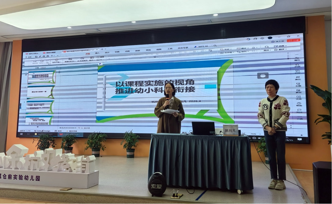 围绕科学衔接的要点,姚老师强调必须遵循儿童发展的连续性与阶段性规律,聚焦身心、生活、社会、学习四大维度,通过目标嵌入、内容整合、主体融合推进实施。她还重点介绍了余杭区在幼小衔接中的本土化实践,以海创幼儿园幼小衔接共同体的建立、苕溪幼儿园“小当家自我管理成长课程”为例,生动展现了以课程实施推动幼小科学衔接的可行路径。